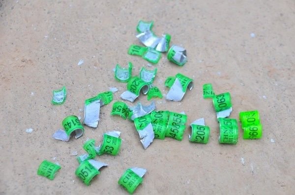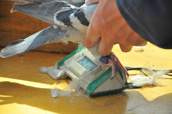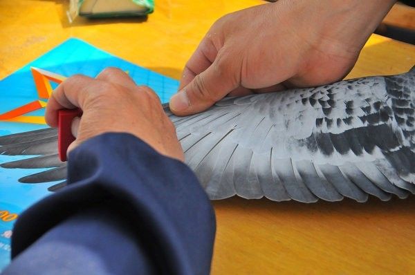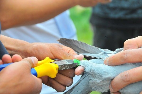 剪环特写 此次共计有20羽没有缴费的参赛鸽被剪环处理
