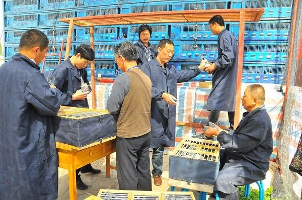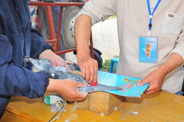 正在剪环的是一羽上海的参赛鸽(此人共计三羽均没有缴费)