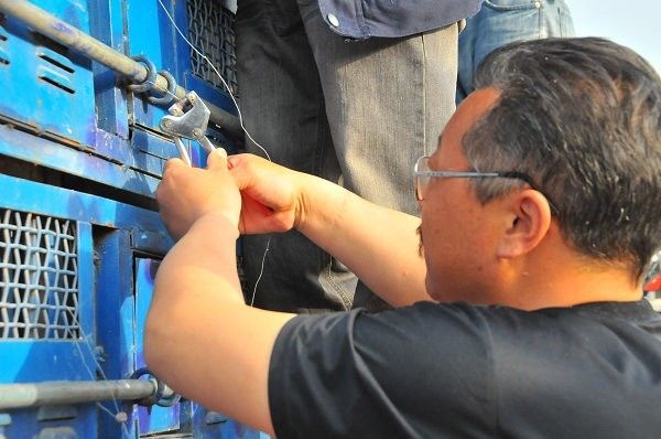 赛鸽车马上要出发了,总经理冯建军叮嘱注意事项