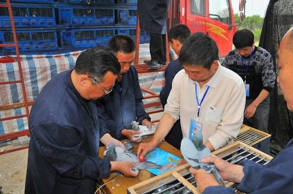 现在时间:4月21日下午1点,集鸽还在进行中,第二组裁判已经换下第一组裁判