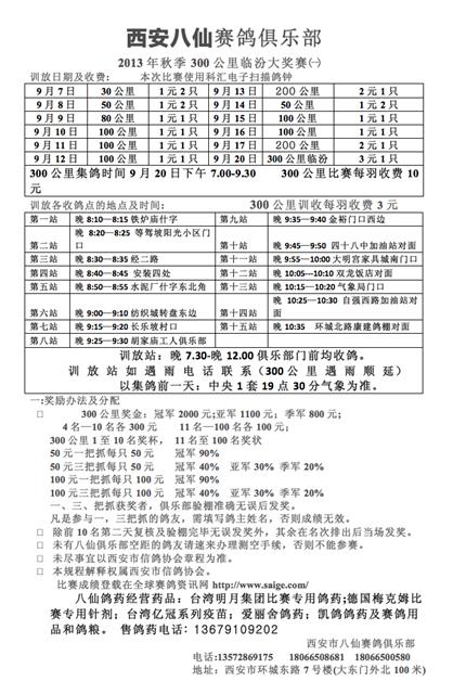 西安八仙2013年秋季300公里临汾大奖赛㈠