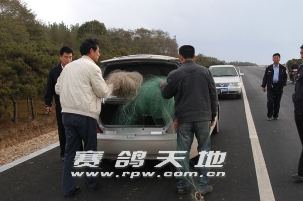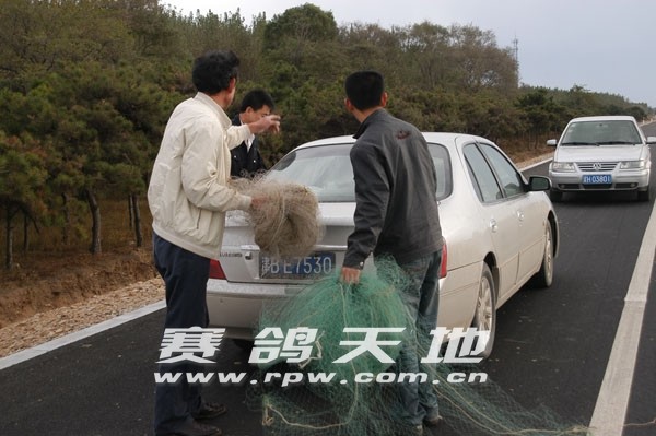津福首关赛 打击网鸽先 ——津福公棚联合公安机关以及媒体《赛鸽天地》报道打击网鸽 今天是天津津福公棚2009年秋季首关300公里比赛开赛的日子。凌晨6点58分5329羽鸽子在辽宁省葫芦岛市开笼放飞。开笼时西北风4-5级。 为了确保比赛的公平公正,鸽友的利益不受损失,天津津福公棚会同辽宁省绥中县公安分局的同志在《赛鸽天地》报道组的陪同下,在开笼前进行了一场特殊的打击网鸽行动。值得一提的是一位在津福交了4羽参赛鸽的绥中鸽友也全程参加了此次活动。 凌晨5时许,天津津福公棚的工作人员马立强和刘维昌带领两组人马,分两拨,从不同的路线前往本次打击的重点区域——位于河北秦皇岛,与辽宁沈阳交界的地区。为了防止 网鸽贼闻风而逃,两组人马来到绥中县后,选择步行前往本次活动的目的地。大约在早上7点钟,活动小组抵达现场。记者在现场亲眼目睹了,数张大网横在半空中。面对如此的“ 天罗地网”,记者不禁慨叹即使再强壮的鸽子也难逃一劫。最后在津福的工作人员和绥中县公安分局的同志的共同努力下,大家将这些“天罗地网”全部拆除。经过清算,活动小 组一共拆除8张大网,其中最大的宽约两米,高度达到了4、50米。好在天津津福公棚出击果断,在鸽群到来之前拆除了这些大网,从而确保了鸽友的利益不受损失。 作为本次活动唯一的报道媒体《赛鸽天地》报道组全程参与和鉴证了这次活动,通过这一活动,我们可以看出天津津福公棚一切为鸽友利益考虑的态度和坚持公平、公正、公开的初衷。相信在津福所有员工的共同努力下,鸽友可以拥有一个更加公平公正的平台,而天津津福公棚也一定会有个美好的未来!