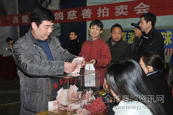本次活动由西安真爱投资集团董事长何志方先生提供了20羽的真爱赛鸽进行现场拍卖。现场由西安市慈善总会直接接收善款,善款将以现场拍鸽鸽友的名义捐到海地地震灾区。早上10点半先进行展示,下午1点半即进入了拍卖流程。拍卖师由国内著名公棚管理专家暨西安赛鸽家冯建军先生主拍。所有拍卖鸽均是无底价拍卖,首个拍卖鸽,编号为073号的无底价起拍,由西安赛鸽高手黄立伟拍得。现场抢拍激烈、高潮迭起,其中名为“波治娇小”的由兰州鸽友张勇先生出价25000元拍得25000元拍得。