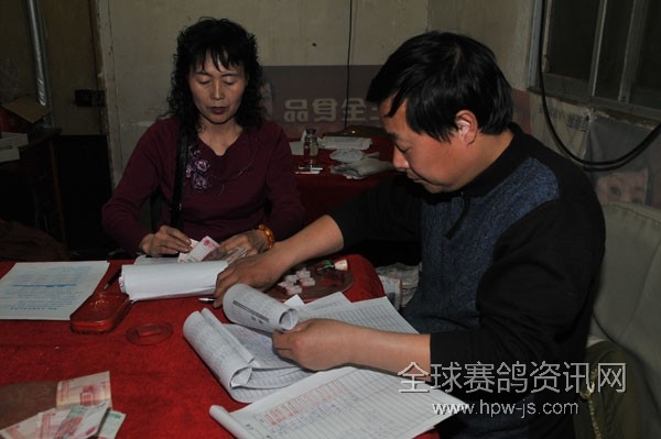 鸽友韩志香(左)与张学军(右)参加指定赛