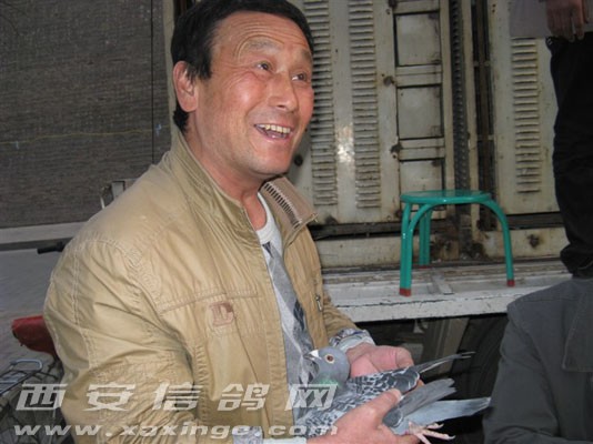 鸽友翟鸿让正在交鸽