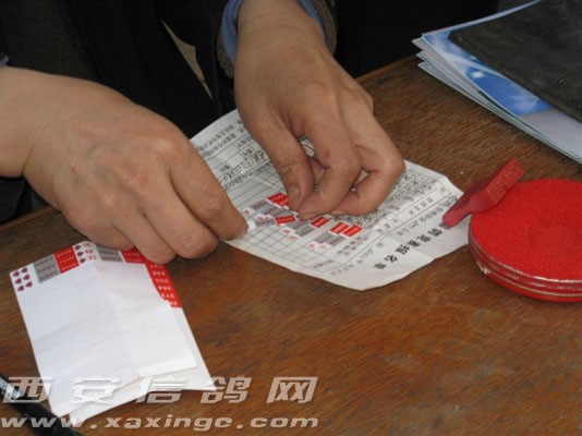 裁判在报名单上粘贴密码条