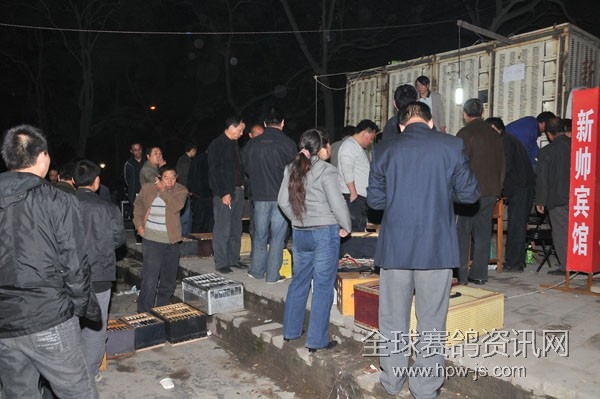新城鸽会集鸽点正在集鸽
