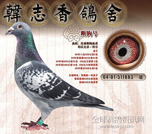 “断胸号”韩氏兄弟鸽舍超级种鸽,此鸽下代发挥众多