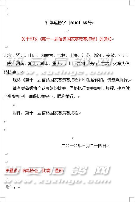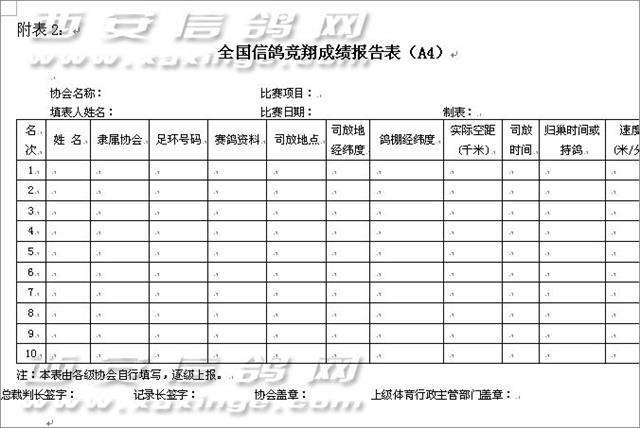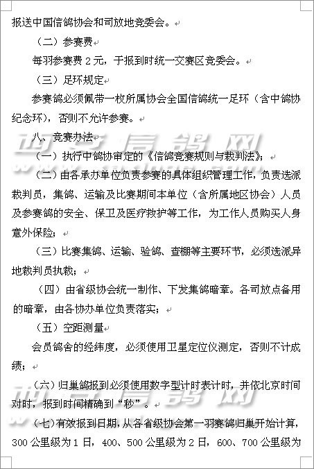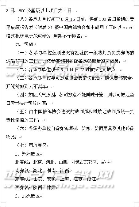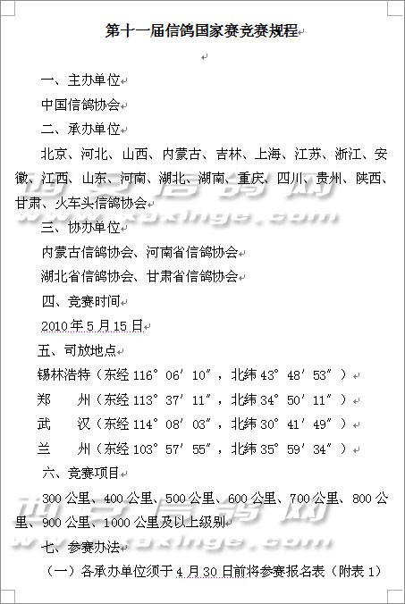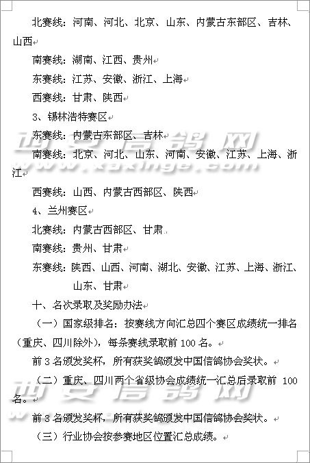 第十一届信鸽国家赛竞赛规程的通知