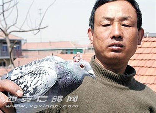 “我就是有这么个爱好,平时养鸽子,看 到它们成群地飞出去又成群地飞回家来,心情特别愉快。”庄善举说,半个月前,有两只鸽子跟着他家的鸽子飞了回来,腿上都戴着环,他开始以为都是普通的信鸽,也没去管,以为没多久它们自己就飞走了。“后来,我发现这两只鸽子都留在这不走了,而其中一只鸽子在笼子里老是受其他鸽子的排挤,我就单独将它放在单间里,仔细一看脑袋上长了个粉红色的肉瘤,还把我吓了一跳。”庄善举说。“我后来仔细观察发现,这只特殊的鸽子脑袋上长的不是肉瘤,而是被植入了一种类似于电脑芯片的东西。”庄善举告诉记者,随后,他连忙将这只特殊的鸽子放飞,没想到三天后它又飞回来了。“后来听别人说这只鸽子可能是科研发明,我就把它放在笼子里好好地照顾,防止它走丢或被别人捉住。记者看到,这只头戴 “皇冠”的鸽子腿部戴有“CHN2008-15”的腿环,头顶上有一个粉红色的底座与脑袋紧紧相连,底座中则“埋”着几根细丝。“我想把这只信鸽还给它的主人。”庄善举说。