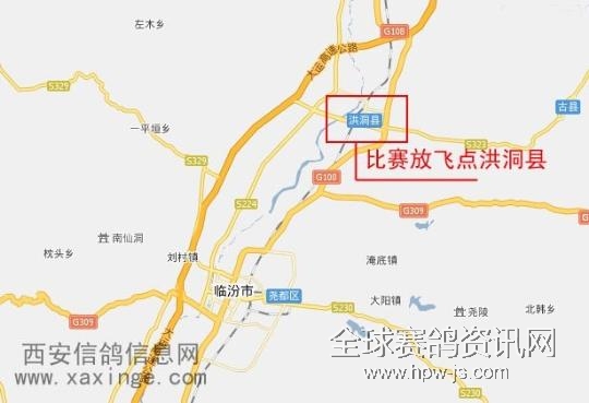 山西临汾---陕西西安模拟赛鸽归巢线路图