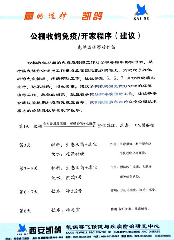 西安市老牌赛鸽制药企业-凯鸽品牌,目前客服指导等完备公棚体系