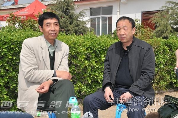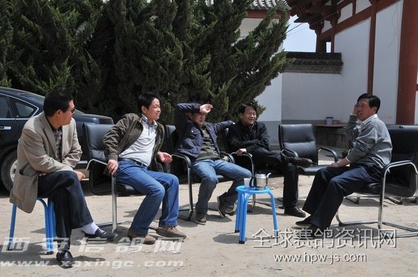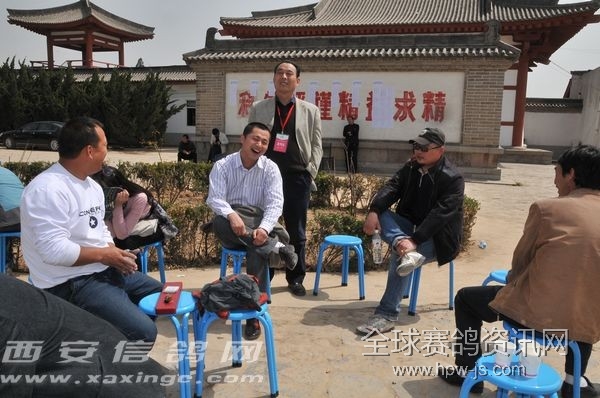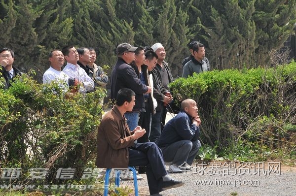 参赛鸽友西安京华鸽舍王金栋与好友观看比赛