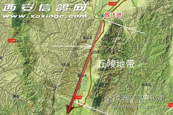 赛鸽开笼后约有80公里地段是丘陵地区