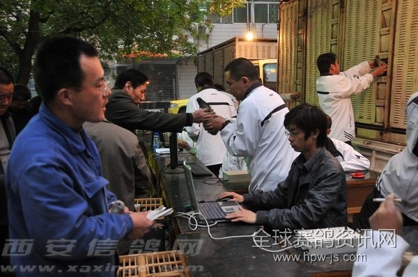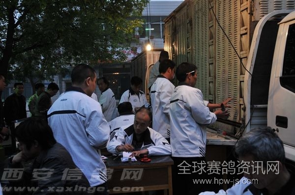 西安市鸽会400公里“汽车杯”大赛集鸽 图文:孙洁 市鸽会第二关400公里17日下午开始集鸽,虽然上一站300公里归巢不是很理想,在访问的部分鸽友中多数归巢在60%,其中也包括一些常常得奖的鸽友,其中有位鸽友放了21羽,都是第一次比赛,当天归巢10羽,第二天归巢1羽,随后再无归巢鸽。但也有部分鸽友归巢率很高,经过询问得知,损失比较大的基本上都是第一次参加300公里的幼鸽,而归巢率较好的都是老鸽,一些获奖鸽本身就是去年得过奖的参赛鸽。 这次400公里是今春首场汽车大奖赛。本场赛事包含三个赛项,“团体赛”奖200名,奖金三万;“和谐杯”第二关单关奖励30名,奖金0.8万;再者其中“汽车杯”总奖金十五万。冠军得主将得汽车一部,很是诱人!三个赛项总奖金18万8千。除此之外还有一项指定赛是根据收费定奖金,根据市鸽会集鸽公告指定鸽共收995羽,每羽30元指定费,奖金是29850,这样第二关400公里正规赛项的总奖金已经是21万多了,再加上各项指抓赛项还有近8万奖金,累计已经有近30万了,而今日集鸽总数有2801羽,综合算概率的话,得奖比率还是很高,说白了就是比赛的“性价比”很高。 这次400公里放飞点是山西省介休,是西安市鸽会俱乐部的常用赛点。介休与西安空距刚好也是400公里的级别。介休地段实际上算是丘陵地区,虽然没有太高的山,但是这个地区地形较为复杂,赛鸽再放开后有大约80公里是在丘陵里飞行,沟壑地形较多比较考验赛鸽方向感。