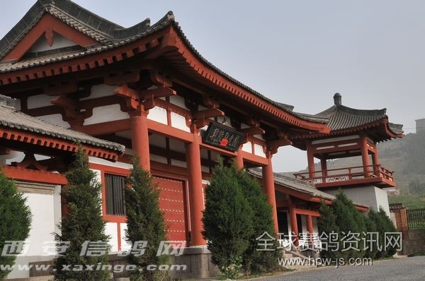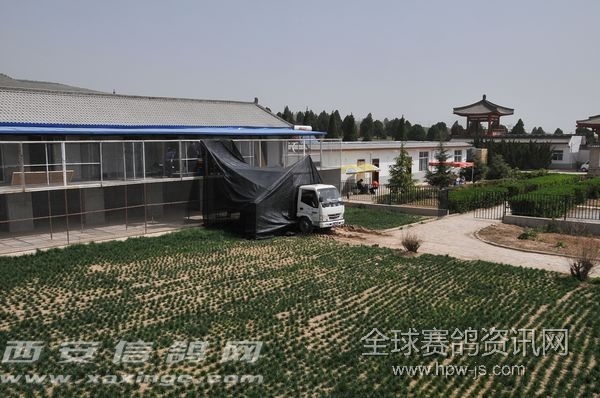 从4月28日将集鸽开始、比赛现场全程直播 公棚介绍 陕西曌翔赛鸽公棚紧邻陕西著名的乾陵风景区,占地六十亩,鸽舍总面积达到1500平方米。公棚坐西向东,鸽舍36间,"U"字形排开,每间鸽舍深6米,鸽舍外亮笼每间也达到50平米,鸽舍墙体由青砖砌成,全地网架空饲养和前后通窗,公棚整体地势高,周围环境优美,除公棚外周围无大型人工建筑物,方圆近十公里无人饲养信鸽。鸽舍后有200米绿色走廊郁郁葱葱,形成天然氧吧。公棚使用国际上最先进目前应用最广泛的德国优必胜扫描系统,目前国内高额奖金的大型公棚均使用这一扫描系统。良好的环境和优秀的硬件设施为曌翔公棚的发展打下坚实的基础。 陕西曌翔赛鸽公棚地理位置优越,与西安机场不足30分钟车程,从西安上绕城高速走福银高速不足一小时车程,陕西曌翔赛鸽公棚为陕西鸽界又添一道亮丽风景同时也为国内鸽友又多一个良好的赛鸽平台。