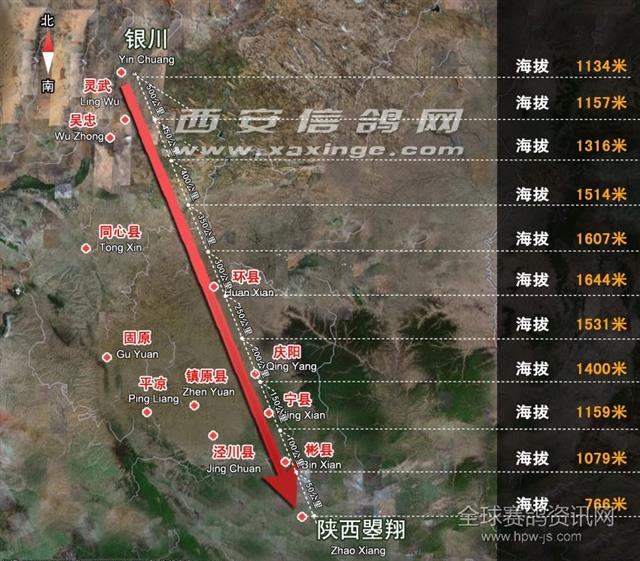 决赛放飞示意图(宁夏自治区银川市--陕西省乾县大约500公里) 现场图片 / 网络编辑 / 实况发布 :孙洁(