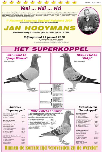 2010年1月15日星期五他于荷兰举行57羽幼鸽欧洲现场拍卖会(荷兰DE DUIF鸽报主办),吸引来一众名家竞相举拍,彼特&姬雅文斯特拉更是疯狂!打破百年来全世界的拍卖记录