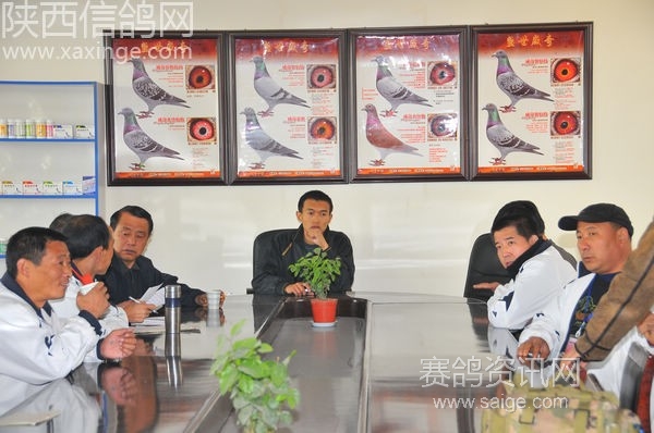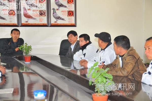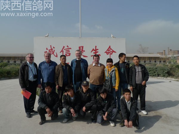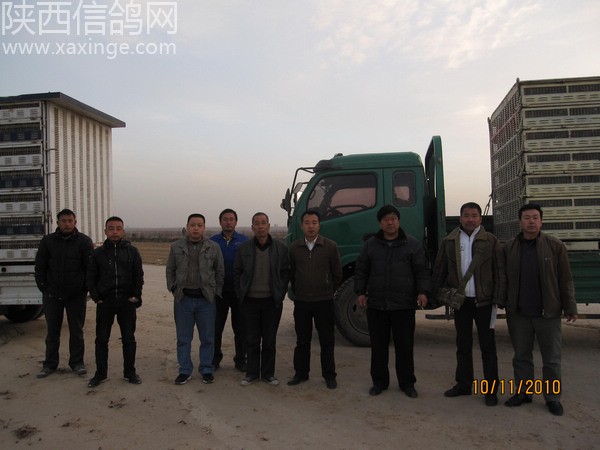 鸽友代表合影 左一:公棚总教练杨小辉 左二:宝鸡代表孙小明 左三:司放员:郭忠勤 右一:户县代表高峰 右二:公棚经理古波 右三:渭南代表:杨选民