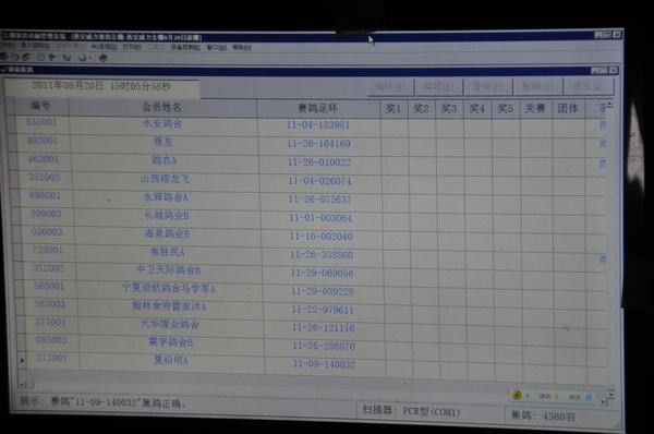 FCI国际鸽联大奖赛中国站公棚查棚 ——记2011年第十三届西安威力公棚2111万大奖赛查棚 作者:孙洁(和平鸽摄影工作室) 今天来自全国各地的鸽友观看西安威力公棚查棚,西安威力公棚这届大赛目前也是2011年FCI国际鸽联大奖赛中国站的赛项。西安威力公棚推动了西安赛鸽事业,也得到了世界各地鸽友的认可。今年举办十二届公棚大奖赛,威力公棚是国内公棚界的老牌公棚。之所得到国内广大鸽友与国外赛鸽名家的支持是威力公棚建棚以来来的努力分不开的。西安威力公棚杨总曾经教导员工说过一句话:“威力公棚每届比赛直到将拍卖会举办完毕才算比赛正式结束”。从总经理华文正、副经理薛永祥、总教练耿文博、以及公棚专职医师王震这个集体的每个人各司其职,每届比赛丝毫不敢懈怠。这不仅是一个团结的集体而且也是一个有着多年经验的管理团队,掌握一套完整的管理机制和饲养技术,曾经邀请德国隆飞尔专业人员以及澳大利亚爱丽丝合作伙伴澳洲首席兽医师托尼先生给予西安威力公棚最科学的指导及建议。这对威力饲喂人员的饲养及保健水平的有很大提升。 西安威力信鸽有限公司运营规范,威力公棚赛在国内外享有非常高的声誉。曾得到中国信鸽协会副主席谢炳称赞。用威力经理华文正的话说一个公平的赛鸽平台是给参赛鸽友带来的乐趣和享受。 上午十点,查棚正式开始。本文将不断更新最新进展直至查棚结束。