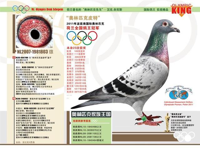1939年出生的史宾斯今年已经72岁,但是却有着64年的鸽龄。在荷兰鸽界,他是一个家喻户晓的人物,由于他的辉煌成绩,他在荷兰被鸽友爱称为:Empire of Pigeon Sports (赛鸽运动国王),这是源于他多年来在世界赛鸽奥林匹克大会上的卓越表现,他凭借在国际鸽联(F.C.I.)举办的14次奥林匹克大会上,入选38羽荷兰奥林匹克代表鸽的骄人战绩创造了荷兰赛鸽运动的一项伟大记录,他是名副其实的“奥林匹克先生”。 史宾斯的鸽舍和爱鸽:尽管汉克生意繁忙且拥有众多的社会职务,但赛鸽运动才是他的生命。汉克.史宾斯的家中建有全木质结构的鸽舍,分为种鸽舍,幼鸽舍,和选手鸽舍,选手鸽舍分别为鳏夫雄鸽和寡居的雌鸽提供有单独的隔间。他的种鸽舍中目前一共拥有16对种鸽,他依靠这些种鸽每年作育大概80羽幼鸽参加比赛;他的选手鸽舍中保留有36羽鳏夫雄鸽和36羽寡居雌鸽,这些成年赛鸽是他赖以参加奥林匹克代表鸽选拔的主力军。汉克.史宾斯自8岁起接触赛鸽运动,他的赛鸽血统90%来源于詹森兄弟鸽系,早期的鸽子血缘来自于伯格曼兄弟鸽舍的詹森血统,这些鸽子使汉克在14岁的时候就成为一名伟大的冠军鸽友。后来汉克引入了100%克拉克血统以及荷兰多家实力派鸽友的鸽子加入到自己鸽舍的基础血线中,通过高超的作育手法,逐渐形成了自家以速度鸽作为基础,却在中长距离见长的“汉克.史宾斯”鸽系。谈起他的赛绩,自1964年至今,他几乎包揽了所有的俱乐部冠军,这些普通的比赛已经无法唤起他的激情和动力,从1981年开始,他唯一的爱好就是参加奥林匹克的超级选拔,并把其定位他参与赛鸽运动的唯一目的和乐趣。因为他认为只有奥林匹克代表鸽才是“完美赛鸽”的代名词,这是基于奥林匹克代表鸽评选的严苛规定和评分机制。只要是有奥林匹克选拔资格的比赛,汉克.史宾斯都全力以赴,而且他擅长精兵作战。 1994年荷兰NPO首次批准幼鸽可以依靠400公里以上级别的国家赛积分来参选奥林匹克代表鸽。在获批的首场国家赛(433公里)中,汉克仅凭借4羽幼鸽参赛就获得全国冠军,同时参赛的夏拉肯先生凭借10羽幼鸽获得全国亚军,赛后夏拉肯都不得不对汉克.史宾斯的超级赛鸽竖起大拇指!赛鸽的顶级荣耀--奥林匹克代表鸽。 国际鸽联F.C.I.每隔两年举办一届奥林匹克大会,参赛国主要为东欧和世界其他地区的赛鸽强国参加评选,至今已经成功举办32届。每个参加奥林匹克大会的国家只能评选出10羽赛鸽(5羽雄鸽,5羽雌鸽)做出本国的奥林匹克代表鸽参加国际鸽联的综合品评,这10羽赛鸽不但要求翔绩突出,而且外观也要求完美无瑕。因为奥林匹克的品评分为两个组别,只有翔绩突出而且自身条件完美绝伦的鸽子才能获得奥林匹克代表鸽的殊荣,代表自己的国家参加品评。 荷兰的奥林匹克代表鸽资格竞争十分激烈,每届奥林匹克大会前3个月荷兰赛鸽协会(NPO)就开始选拔工作,全国会有超过1000羽的超级赛鸽被选拔出来经过初试,这些鸽子必须在规定的重大赛事中有超过3000公里的入赏记录,且每次比赛的入赏积分都要在0.2之内;NPO会成立奥林匹克代表鸽选拔委员会,为这1000多羽鸽子的赛绩和外观条件逐个打分,只有10%的鸽子可以经过初选;然后提高选拔标准,对经过初选的赛鸽进行复试,只能有15羽赛鸽能够通过严苛的复试。最后,在距离奥林匹克大会之前2-3周的时间里,这15羽赛鸽中的10羽会被最终确定,接受国际鸽联的最高检阅。最后入选的10羽万里挑一的完美赛鸽将成为全荷兰本届奥林匹克大会的国家奥林匹克代表鸽!在荷兰和比利时,有的鸽友穷其一生也难以拥有一羽正式的国家奥林匹克代表鸽,但是汉克.史宾斯自1981年的东京奥林匹克大会至2011年波兹南奥林匹克大会,共有38羽赛鸽入选其间的14次奥林匹克大会的全荷兰奥林匹克代表鸽!这在荷兰乃至世界鸽界都是绝无仅有的光辉记录! 附表:汉克.史宾斯入赏奥林匹克代表鸽一览 1981 第17届奥林匹克大会 Tokyo 5羽 1983 第18届奥林匹克大会 Prag 2羽 1987 第20届奥林匹克大会 Dortmund 2羽 1989 第21届奥林匹克大会 Katowice 1羽 1991 第22届奥林匹克大会 Verona 1羽 1993 第23届奥林匹克大会 Las palmas 1羽 1997 第25届奥林匹克大会 Basel 3羽 1999 第26届奥林匹克大会 Blackpool 6羽 2001 第27届奥林匹克大会 Kaapstadt 5羽 2003 第28届奥林匹克大会 Frankrijk 3羽 2005 第29届奥林匹克大会 Portugal 1羽 2007 第30届奥林匹克大会 Oostende 2羽 2009 第31届奥林匹克大会 Dortmund 4羽 2011 第32届奥林匹克大会 Poznan 2羽 鸽系的发扬 汉克.史宾斯的赛鸽家族如此优秀,中国鸽友却很少听闻,甚至不知道他就是爱亚卡普鸽舍的超级赛鸽“邦德先生”(NL98-5834502,波治国家赛10221羽全国冠军,3次冠军,8次前十名)的作育者和原主人;因为他不但家境殷实,又爱鸽如命,所以从不以买卖赛鸽作为营生,甚至连自家鸽舍的网站都没有!但是那些有幸得到他鸽子的鸽友却深知汉克.史宾斯赛鸽的威力! 著名的意大利冠军联盟(I.C.E.鸽舍)的基础血系几乎全部来自汉克.史宾斯,I.C.E.的代表名鸽德比号“Derby”(2008FCI金环特比冠军)和托罗号“TORO”(2008年一岁鸽省鸽王一位)都是100%史宾斯原舍种鸽做出! 此外还有众多荷比的超级赛鸽体内流淌着汉克.史宾斯鸽系的优秀血脉! 2011年初一代大师“奥林匹克先生”---汉克.史宾斯,因为年事已高,不得不结束了他钟爱一生的养鸽生涯,舍内全部的80羽种鸽、赛绩鸽(包括2011年的2羽奥