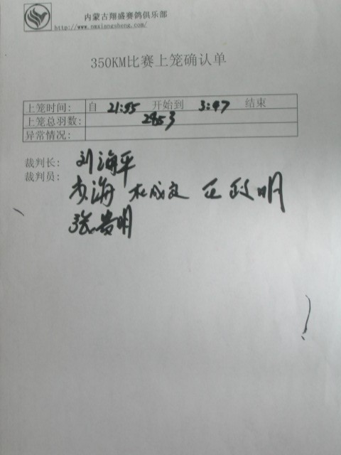 裁判员们一直都在忙碌于比赛,近日内蒙古有好多比赛都需要裁判的监督,在刚刚结束的内蒙古幼鸽联翔赛,又要投入公朋的预赛上笼,每一个裁判员都很认真负责监守在自己的工作岗位,在这里我代表广大鸽友向你们说,你们辛苦了,在每一次的比赛里你们都要熬夜清点鸽子的羽数,在每一场的比赛里你们都能做到公平、公证、公、有你们的监督我们鸽友才可以放心,裁判是什么裁判就是我们鸽友心中的明镜,一个没有污点的明镜。望我们的内蒙古信鸽事业更加辉煌!