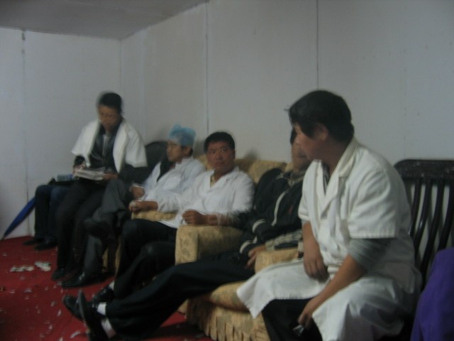 (上图为裁判和工作人员在一起商讨一些集鸽的有关事项)