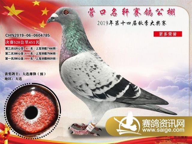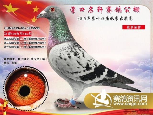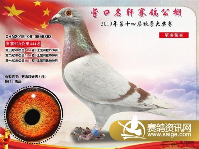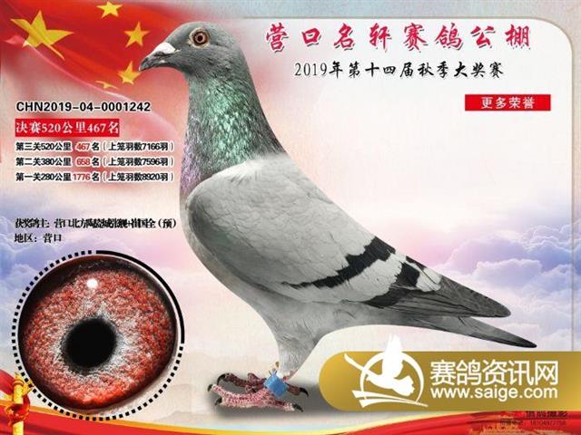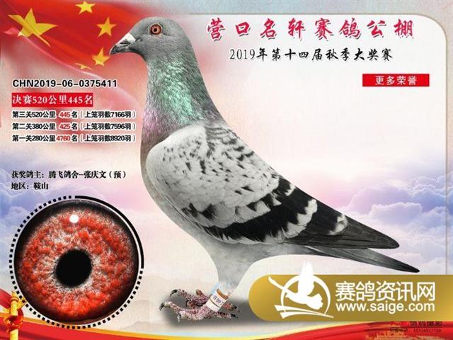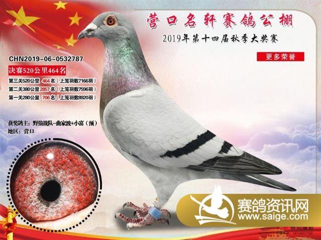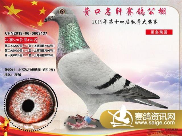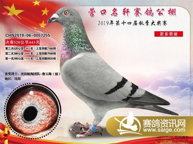营口名轩公棚公棚决赛441名-471名获奖鸽照片