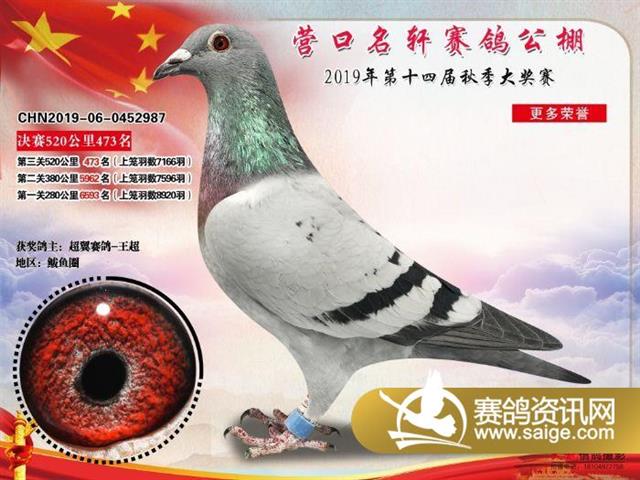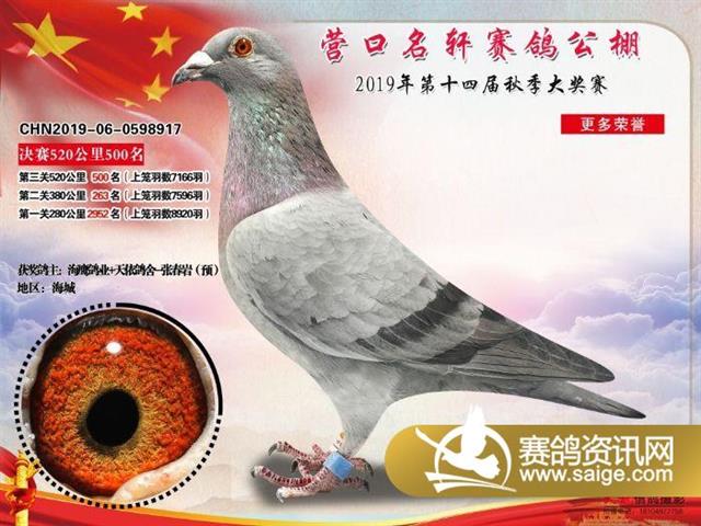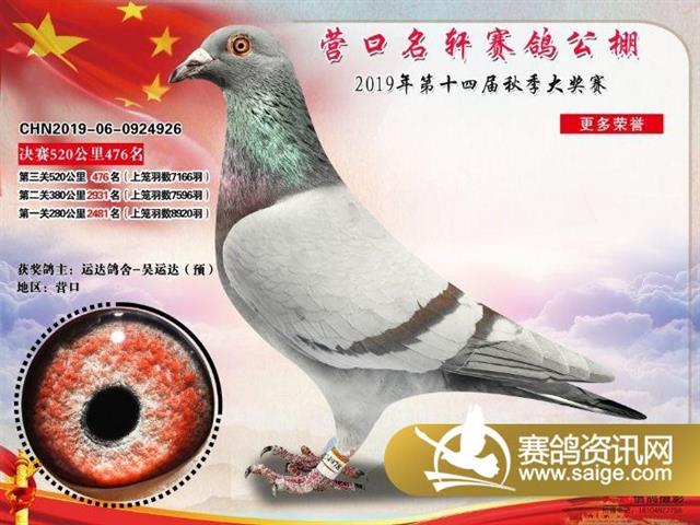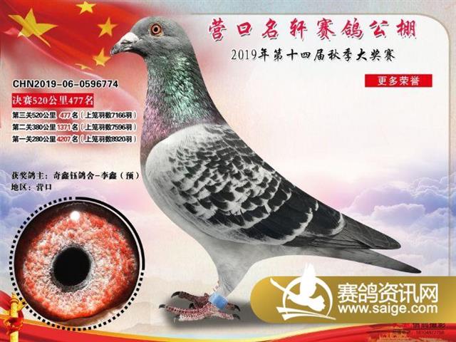 营口名轩赛鸽公棚决赛471名-500名获奖鸽照片