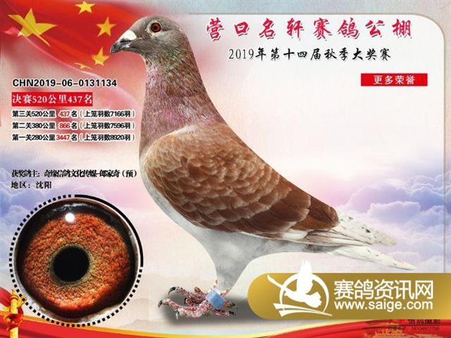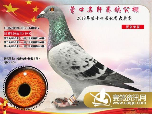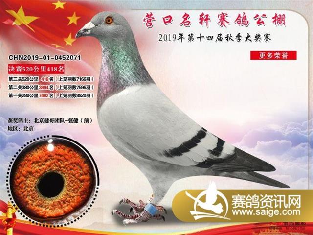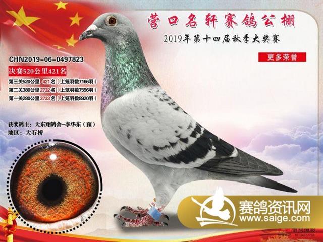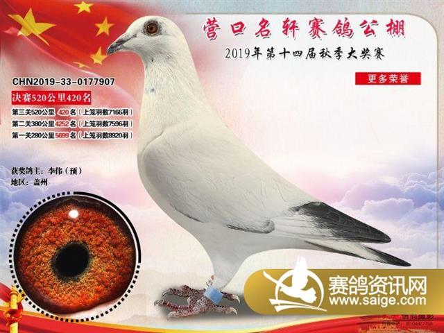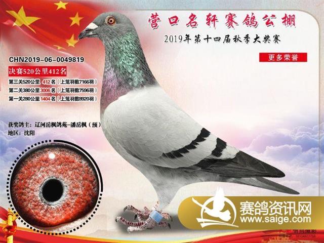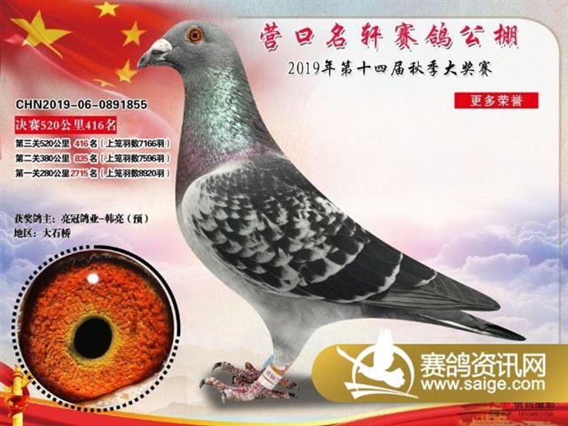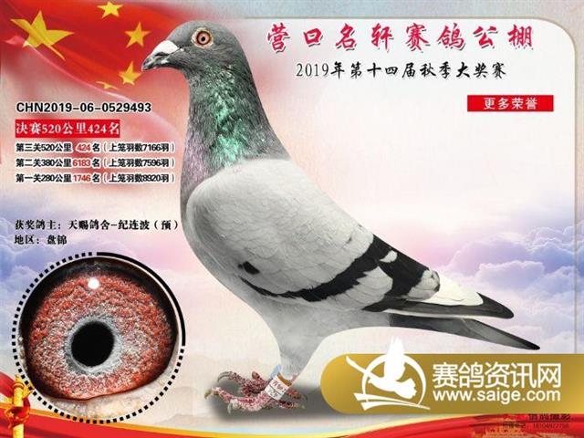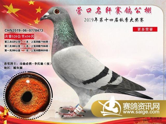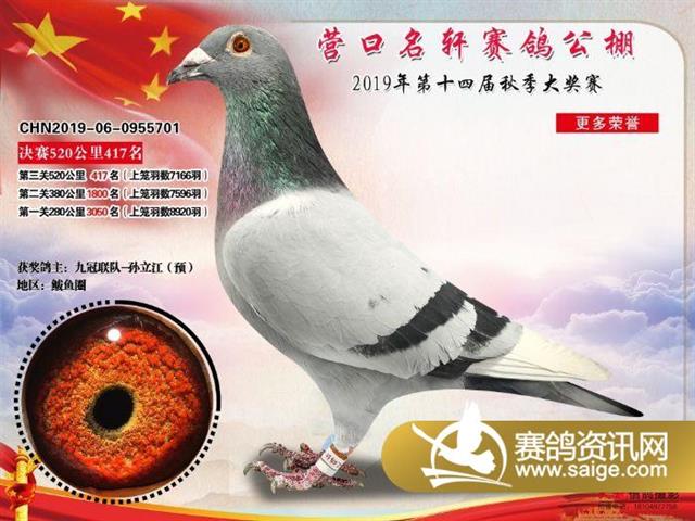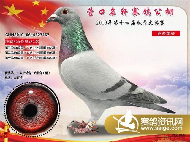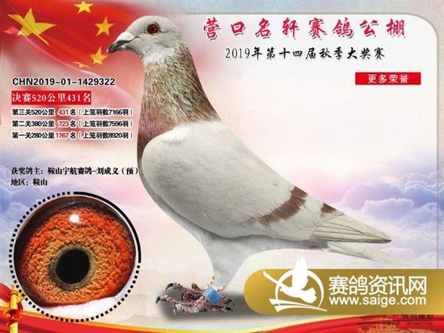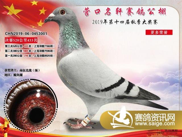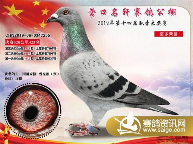营口名轩赛鸽公棚决赛411名-440名获奖鸽照片