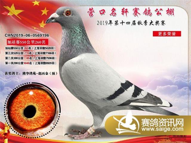 营口名轩赛鸽公棚550公里加站赛200名-263名获奖鸽照
