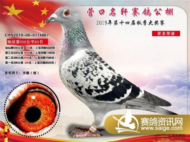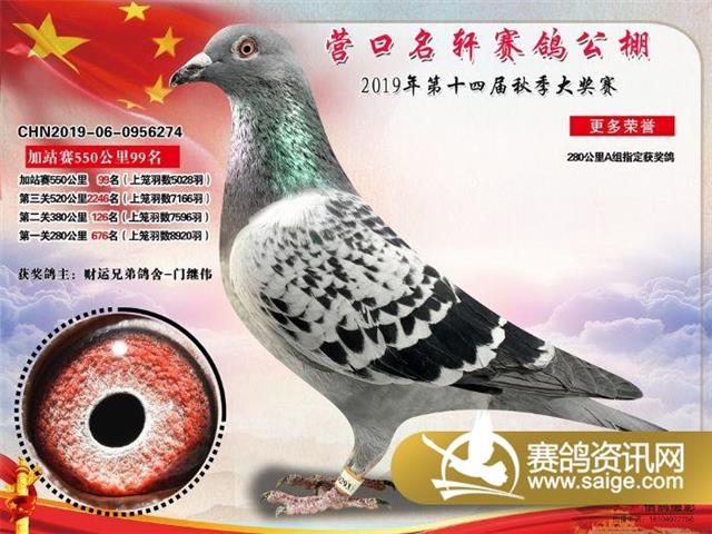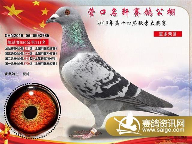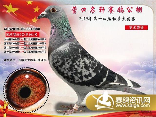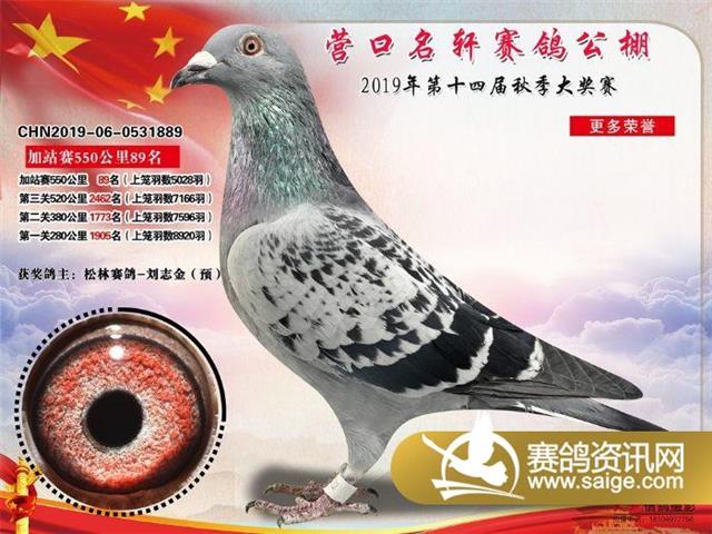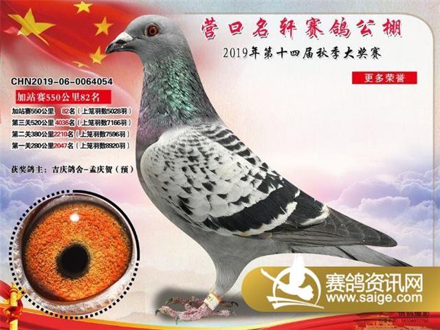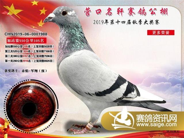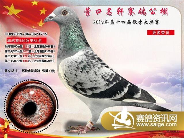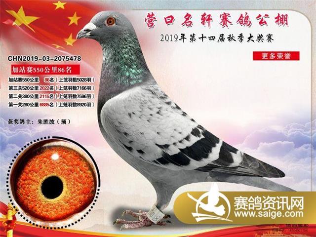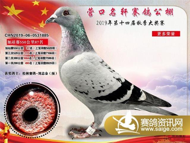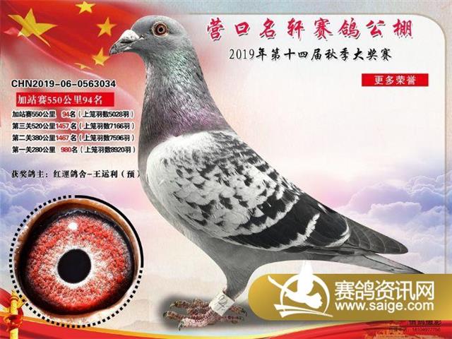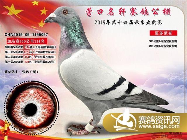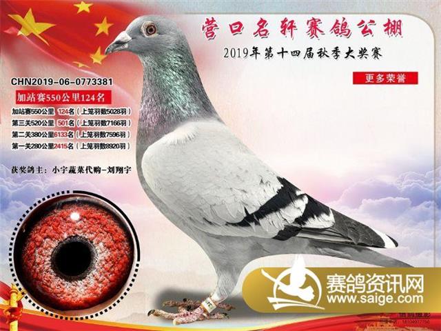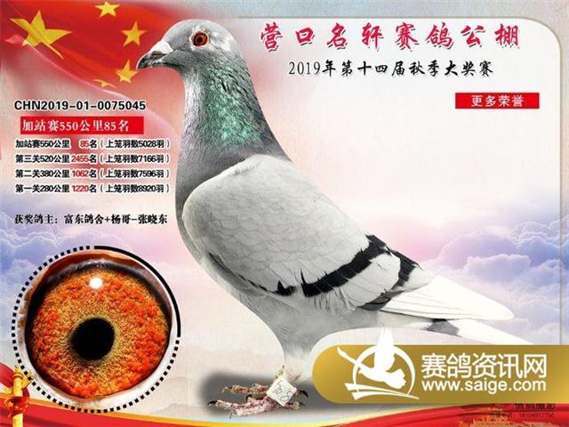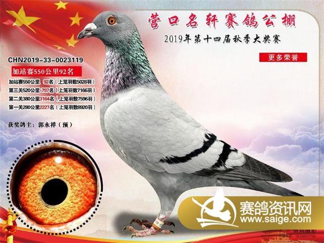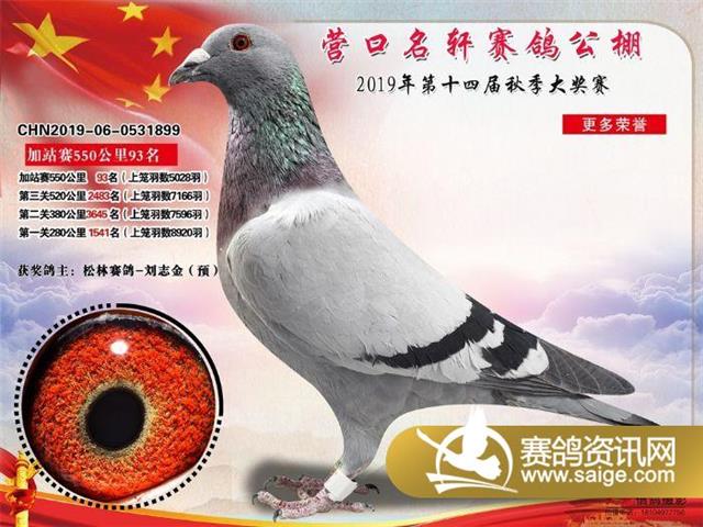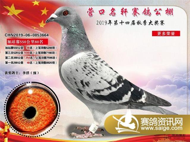 营口名轩赛鸽公棚550公里加站赛80名-124名获奖鸽照片