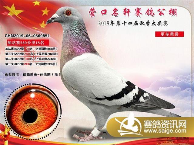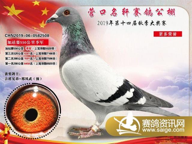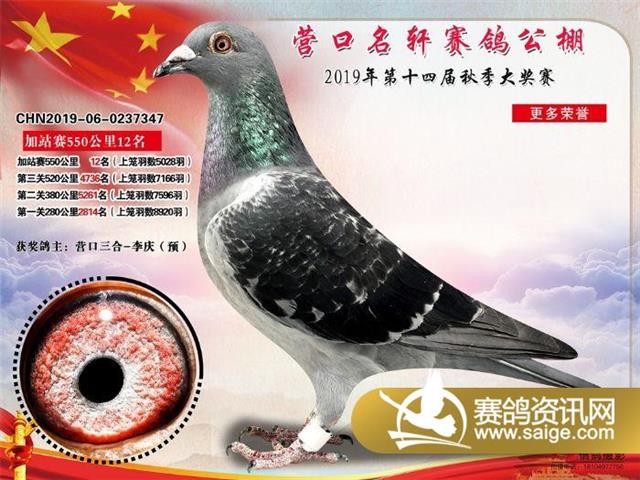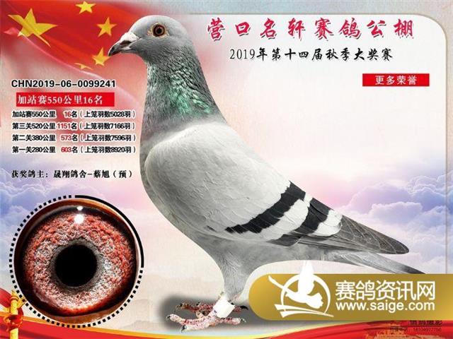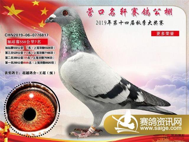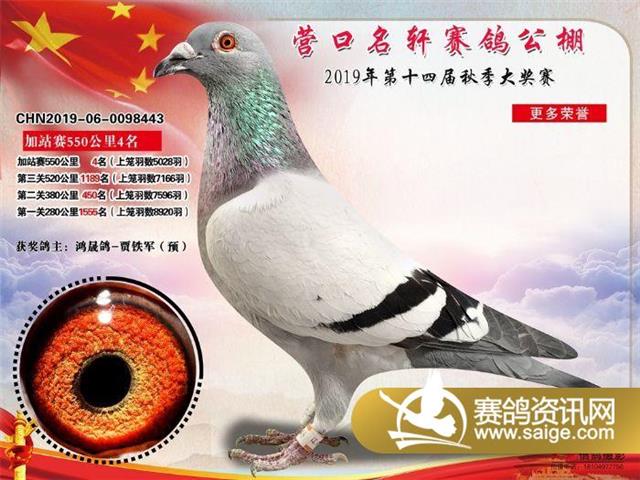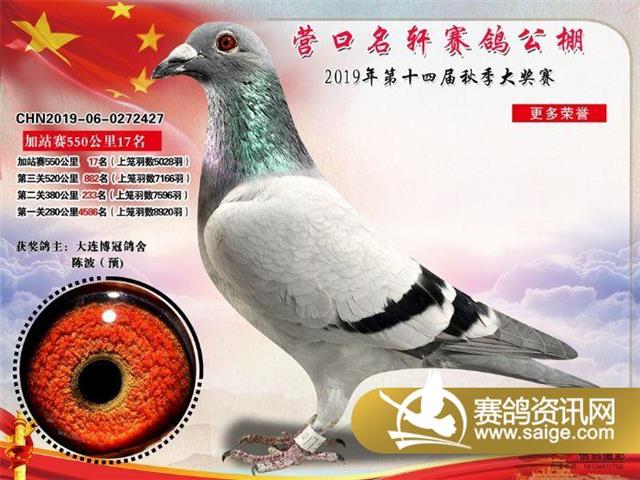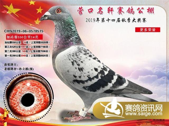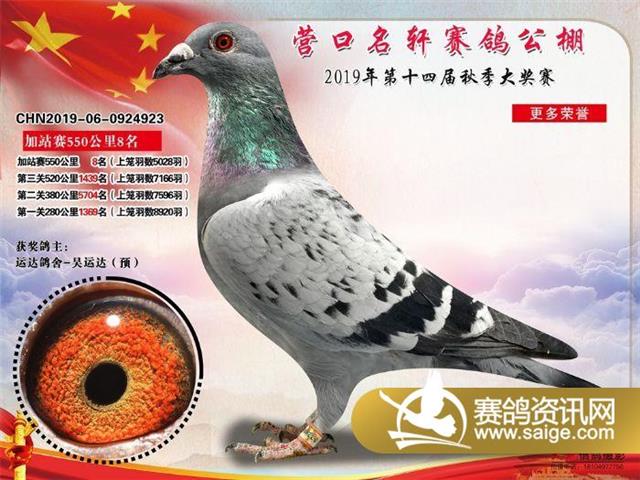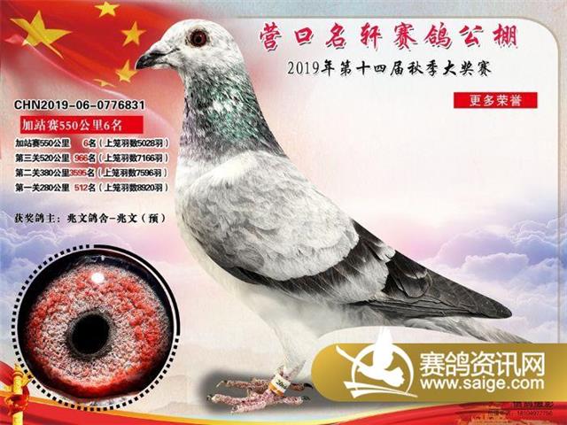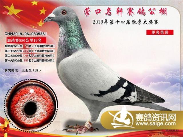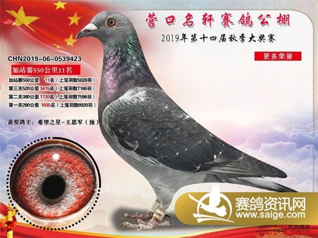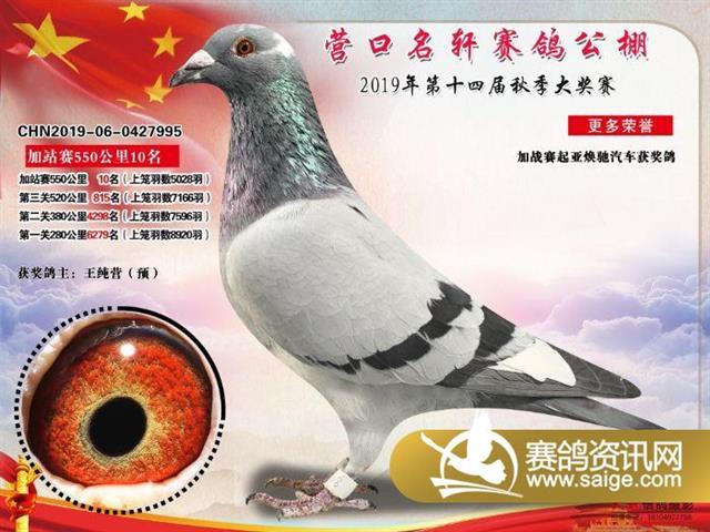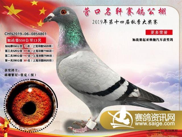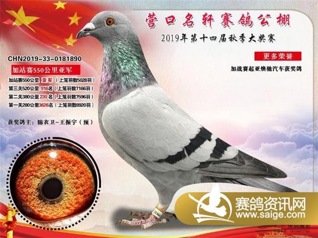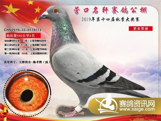 营口名轩赛鸽公棚550公里加站赛冠军-19名入赏鸽照片