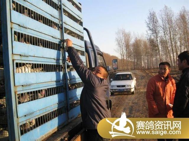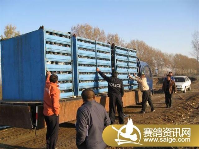 德惠鸽友在开笼前用玉米秸振笼迫使赛鸽提高兴奋度