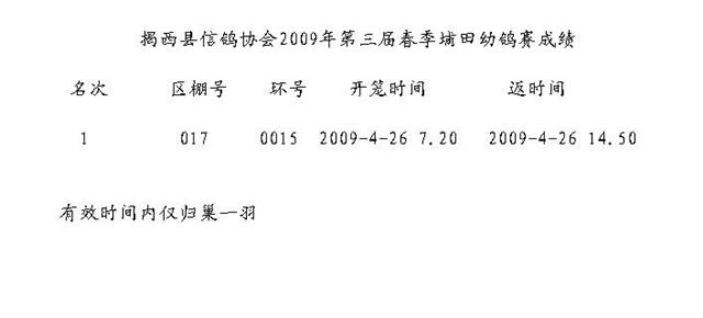 2009年揭西县信鸽协会春季幼鸽比赛成绩