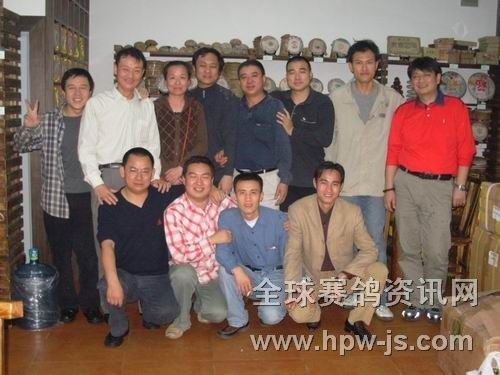 晚餐后,会员张书禹邀请大家到他新开张坐落在深圳市罗湖区黄贝岭商城6栋113—114号的中禹茶行喝茶。书禹盛情好客难辞,我们一行人从命驱车中禹茶行,书禹不是端茶倒水,就是啤酒点心供上,忙得不亦乐乎。大家玩得高兴时,信鸽赛场的激烈比赛还没有过足瘾,郑涛与书禹两人比力扳手腕,互相指责对方耍痞斗嘴皮,给大家带来一片欢声笑语。最后为了感谢书禹的友好招待,我们所有去的人在中禹茶行内来了个合影留念,祝福他的生意兴隆,发大财,赛鸽取得好成绩。