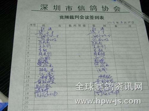 在协会验鸽完毕的部分裁判员风尘仆仆地赶到大龙园时,离开会的时间不多了,休息片刻,全体裁判员签到后,会议开始。