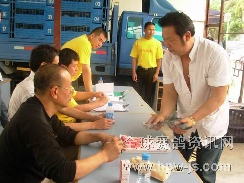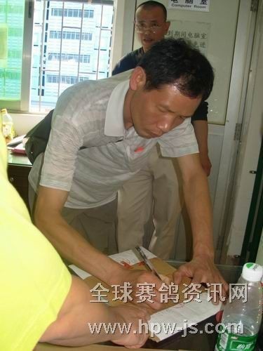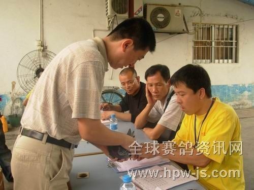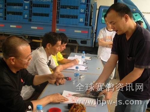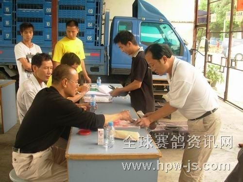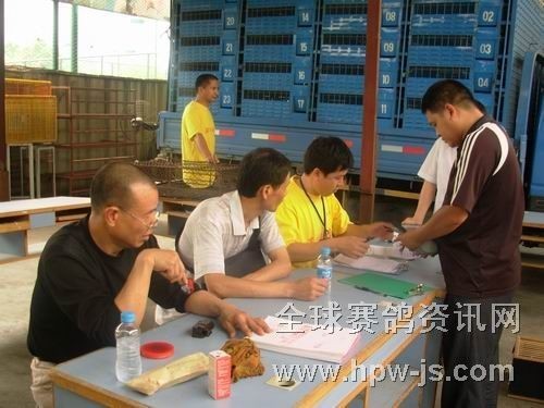 迎奥运深圳,佛山联赛决赛深圳集鸽现场 原创{图} 深圳,佛山两协会春季500公里联赛决赛从今天集鸽起算正式拉开了战幕。两协会互相委派两名裁判员到对方协会执行裁判和监督工作。 深圳协会集鸽现场由深圳协会总裁判长郑涛亲自挂帅带领裁判员执裁,在佛山裁判马少斌,杜建宏两位先生的执裁和监督下,233羽参加决赛的信鸽准确无误的装进了赛鸽车。从佛山集鸽现场的电话得知佛山参加决赛243羽,两地共476羽信鸽参加决赛。两地共卖环1500枚,各会750枚,从以上几个数字来看,两协会在赛前的训练失鸽率在三分之二还强,相当残酷。明天江西宁都的决赛能否成功,很大的因素取决于上天的恩赐,据气象部门的预报,司放地江西宁都及赛鸽回归经过的江西境内全是雨,凶多吉少,情况依然严峻。 天气残酷知好鸟,形势严峻识豪杰。好鸟成就名人乎?还是伯乐鉴宝驹?敢于参与者,勇者!我佩服!祝参与者好运!勇者胜! 深圳鸽友之家 徐新春 2008-4-30