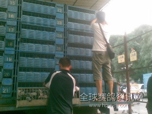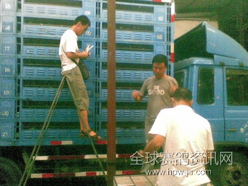 忙碌的裁判送鸽进鸽车