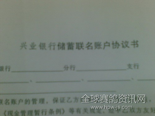“鸿瑞”的彭先生(是台湾同胞)通过多年在深圳鸽界的摸爬滚打深知鸽友们需要的是看得见摸得着的兑现心态。好吧!兵马未动粮草先行。出售足环前将30万人民币先打入由会员推选的代表汪伟,曹建华,张书禹,徐新春4人银行联名账户保存,此资金作为今后俱乐部赛事的奖金来源保证。彭先生给了大家一颗定心丸吃,就看会员怎么吃,是吃大还是吃小,全仗各位的本事啰!这或许就是诚信。