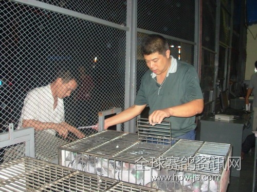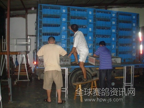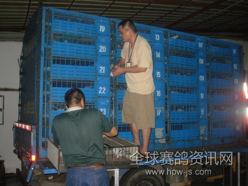 曾武,汪伟在给赛鸽上车