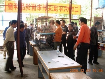 鸽友参观品评鸽