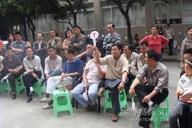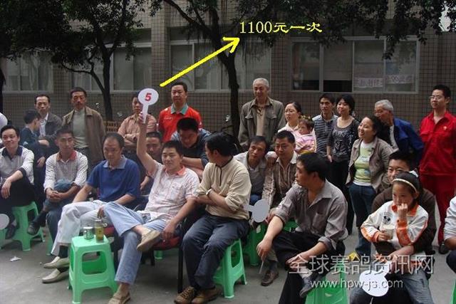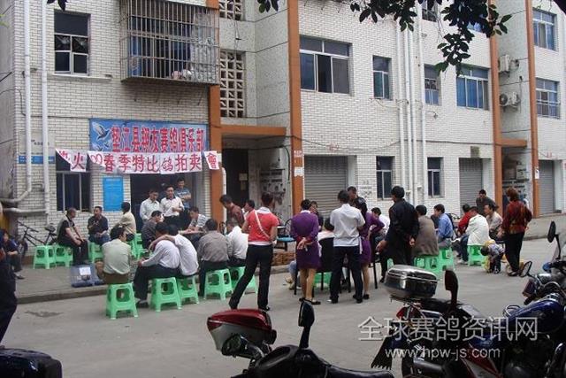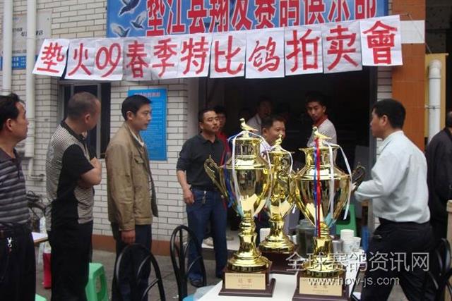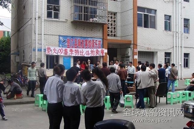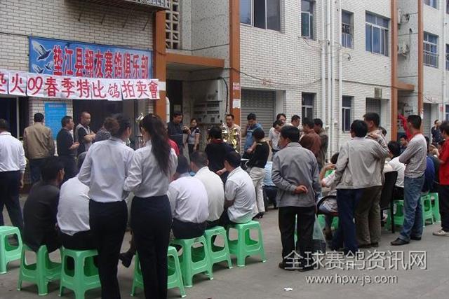 二〇〇九年五月九日,星期六上午9时至12时。成都铁路局火车头信鸽协会垫江分会,在重庆市垫江县桂溪镇铁水桥二公司后门——垫江翔友赛鸽俱乐部。这里没有豪华的桌椅、没有音像伴奏、只有平坦的公路坝坝(称坝坝拍卖会)和清茶,以及鸽友的激情。扑克牌当拍卖锤。举行了别开生面的2009年春赛特比环陕西凤州5月2日前归巢的前10名获奖鸽举行拍卖。外地(长寿区、忠县等地)的鸽友携带种鸽及前名次鸽前来参与拍卖交流。