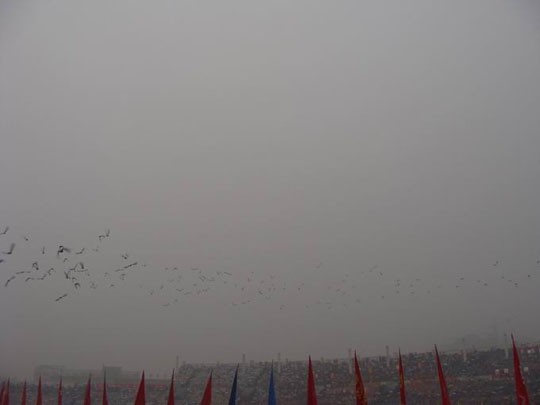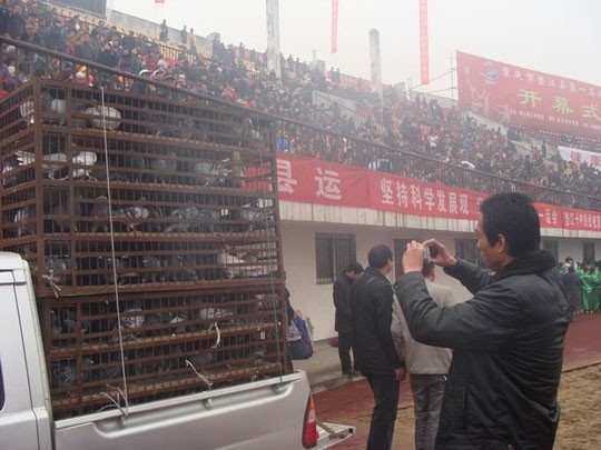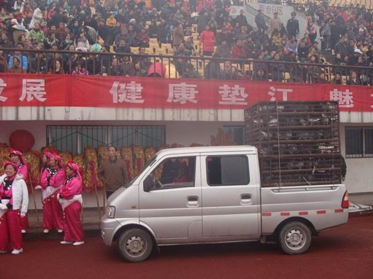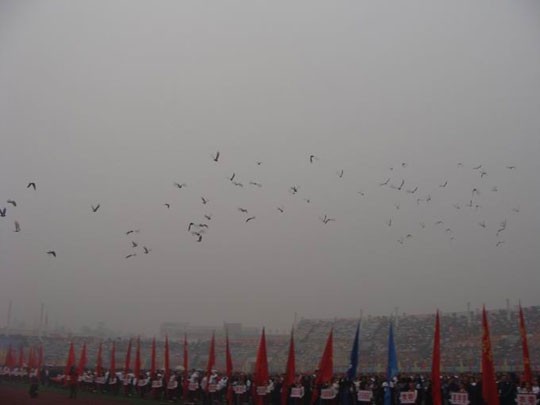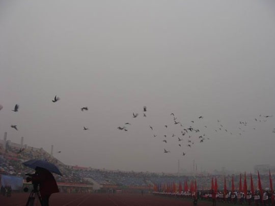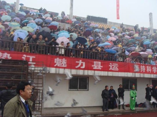 彩旗飘飘,锣鼓喧天。2009年11月26日下午,垫江县第一届运动会开幕式在垫江县体育场举行。来自该县4000余名运动员和演出人员,以及2万余名观众见证了当天盛大的运动会开幕仪式。市政府副秘书长严晓光出席开幕式并宣布开幕。 800羽彩鸽,带着4000余名运动员和演出人员,以及2万余名观众和全县人们祝贺垫江县一届运动会圆满成功!全场几万观众顿时沸腾,热闹非凡,掌声不断,惊呼声此起伏。彩鸽—为运动会增添了喜气氛围,更显示出和平、美好、向上精神!彩鸽—带着广大会员、信鸽爱好者对运动会的祝愿和对运动员的祝福飞向四面八方。