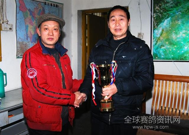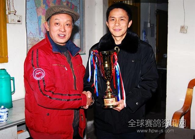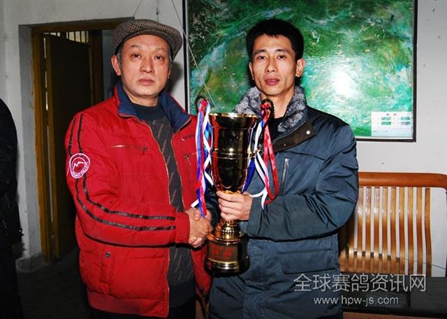 谭总给冠军鸽主:陈劲颁奖。