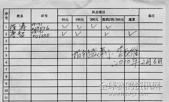 五、外点项目:50元、100元、300元/羽。组鸽:200元/2羽、限本棚见鸽当晚以多胜少相同平分。速度赛6取1:200元/羽。外点项目提5%为服务费。