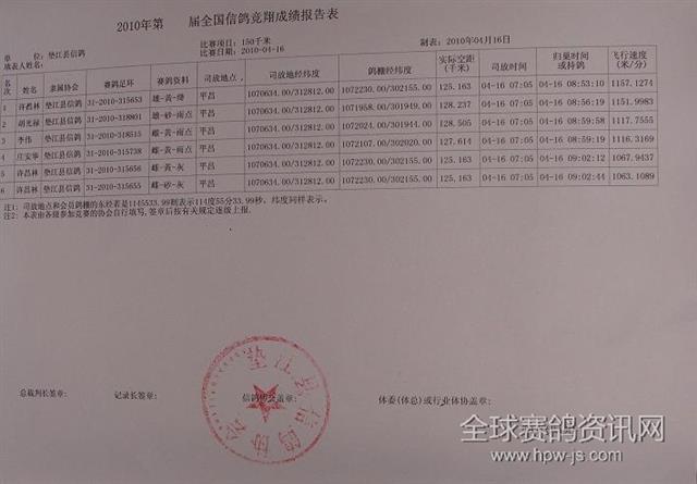 (今日协会快讯)重庆垫江县信鸽协会,2010年春季幼鸽百日龄特比环赛,百日龄点鸽一把抓赛,四川平昌130公里决赛落幕。4月15日20~23时集鸽,16日7时05分在平昌开笼放出。8时53分冠军率先归巢,8时59分前三强赛结束,最快分速1157米/分。晚上21时前,当日归巢特比环赛鸽平分奖金。当日21时前共归巢18羽。一名:许昌林;二名:胡光禄;三名:董敏。百日龄点鸽一把抓:胡光禄。