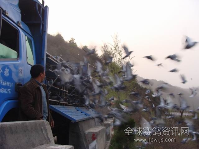 2010年4月27日6时30分,陕西省凤县天气晴好,气温突然升高。兰州沙尘后,浮尘弥漫秦岭山脉。成都铁路局火车头信鸽协会垫江分会组织的,重庆市渝东部分区县铁路系统2010年春季统一的陕西凤县400公里级别特比环和通讯赛决赛,于6时30分开笼。特比环50元组,长寿赵成华茶馆集鸽,共18组x250=4500加3x50=150合计4650元,忠州支会21组x250=5250加3x50=150合计5400元,垫江16750加8x50=400合计17150元,总计27200元,特比环大奖赛和成鸽100元/单羽;200元/每组(3羽)伯马制赛。集鸽1000羽左右。