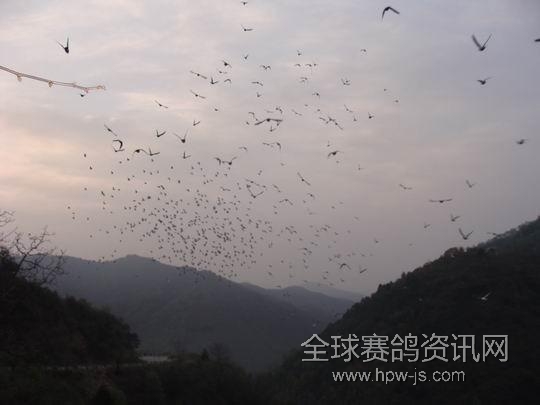 (今日协会快讯):红红的五月,甜甜的梦。2010年5月1日,重庆市垫江县、梁平县、万州区、开县……等鸽友在“劳动节”的休息日,甜甜的做着美梦,今天冠军一定是我……。但是不幸也会伴随出现……。正在甜甜美梦中的6时30分,陕西省凤县天空彩霞满天,晨意空气是那么新绚,没有一丝污染,秦岭山真是留得住菜鸽,留不住勤劳的鸽友。重庆渝东赛鸽(除部分特比环由万州区拉到凤县红花铺镇司放外)梁平县、垫江等县赛鸽在此开笼了。到14时垫江县第一批优秀赛鸽胜利归巢,佼佼者总是那么少部分,到21时,垫江县渝东特比环报到9羽,赛事5月2日继续,通讯赛归巢47羽,总的归巢10%左右。下面欣赏司放现场瞬间。留下美好的回忆和总结,赛鸽成天落变菜鸽,那是冠军的起步。