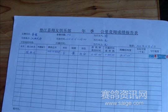 (今日协会快讯):今天2010年10月16日,是九月九是重阳节。天气是那么晴朗,早晨8时,四川省江油市武都,天刚蒙蒙亮,驾驶员、司放员轮流休息一会,武都人多数还在梦乡时,成都铁路局火车头垫江站区、长寿站区、梁平站区信鸽协会,一区两县秋季四川江油市武都特比环决赛和点鸽“双关赛”决赛、通讯赛,于2010年10月16日8时开笼放出。放飞场地开阔。放飞时有轻雾,全天天气晴好,赛鸽归巢比较好。长寿区特比环比垫江县和梁平县归巢率高。下午发稿时,垫江站区不完全统计:特比环归巢4羽,通讯赛3羽,“双关赛”1羽。